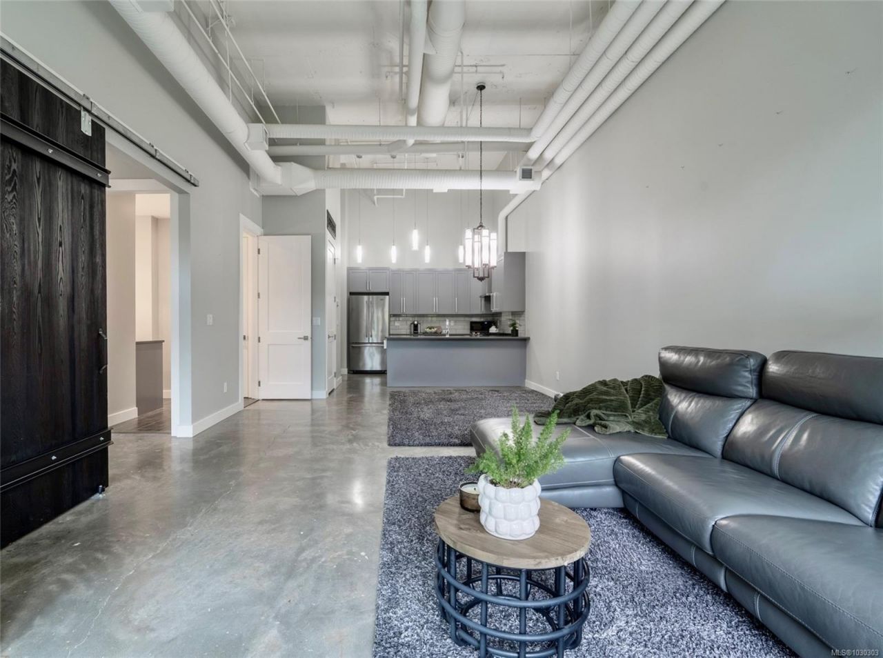 THE LOFTS AT BEAR MOUNTAIN! Prestigious residences in a steel and concrete building originally quality-built for commercial use. This industrial-chic, 1 bed + den home offers 1,000+ sqft of contemporary living with soaring 14-foot ceilings, floor to ceiling windows, polished concrete floors and a bright, open layout. A sleek kitchen complete with quartz countertops, gas range, high-end stainless appliances, oversized double sink, stylish shaker cabinets and high top bar. Revel in a spa-inspired bathroom with heated floors, dual sinks, separate water closet and spacious walk-in shower. Double doors lead to a massive, private backyard perfect...read more